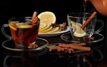 Постер и плакат - «Чашка чая с лимоном и чашка с лимоном без чая. Чай с ароматом зимы.» [код: 9802]