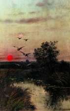 Постер и плакат - «Заход солнца над озером. Ефим Волков» [код: 3330-V]